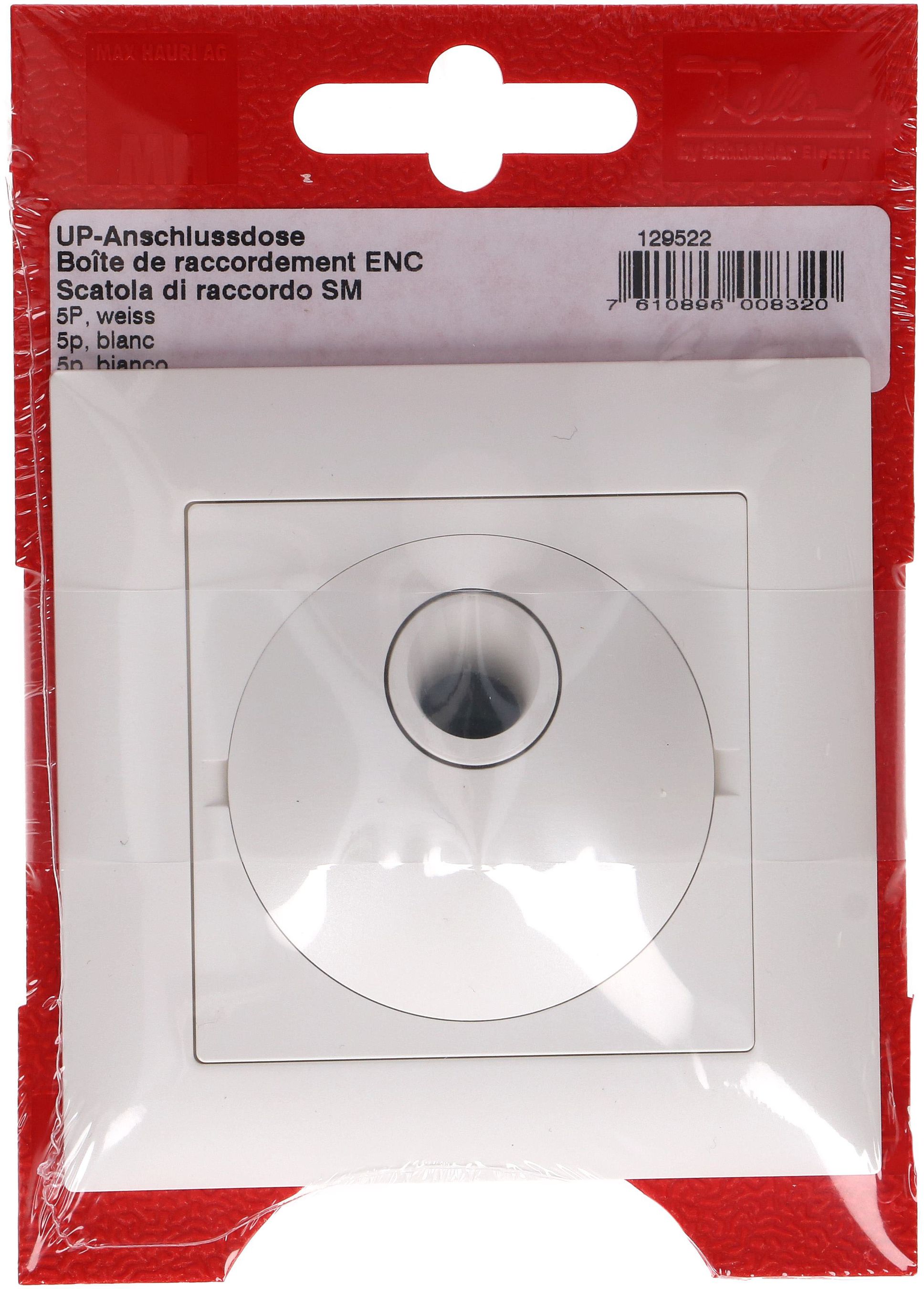 Anschlussdose 5 P / Grösse 1x1 / Bauart: Unterputz / Spannung: 400V / Strom: 16A / Zusatzfunktion: mit Steckklemme / Farbe: weiss / Einbautiefe: 5mm / IP-Schutzart: IP20 / EdizioDue