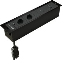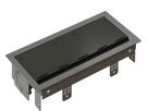 Die hochwertigen BOX PLUS-Einbaurahmen werden zusammen mit den CUBOBOX-Anschlusseinheiten verbaut. Sie sind die ideale Einbau-Lösung für diskrete Strom- und Multimediaanschlüsse, da die angeschlossenen Geräte aufgrund der Staubschutzbürste auch bei geschlossener Abdeckung betrieben werden können. Der Einbau eignet sich für Plattenstärken von 20 bis 40 mm, wobei dank minimaler Einbautiefe die Beinfreiheit unter dem Tisch erhalten bleibt. Zur maximalen optischen Integration wird eine 1 mm dicke Platte der Tischoberfläche in die Abdeckung eingelassen, sodass sich lediglich der Metallrahmen hervorhebt.