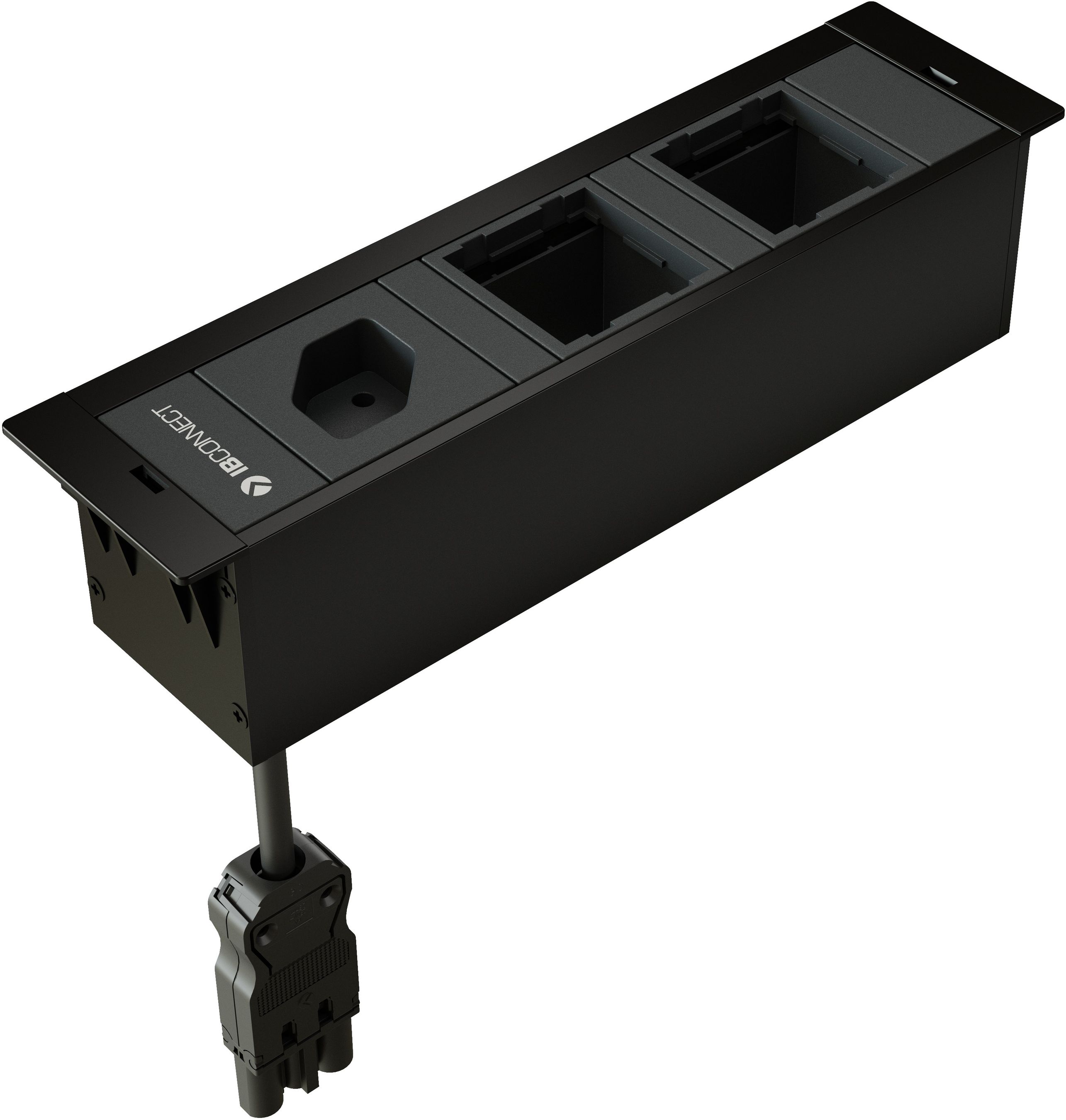 CUBOBOX Steckdoseneinheit / Farbe: Profil schwarz RAL9017, Komponenten anthrazit RAL7016 / 1x Typ 13, 2x Leermodul / inkl. Befestigungsset für BOX mit 3 Modulen / Aluminium / Zuleitung: Steckverbinder misch. mit Marktstandard H05VV-F3G1.5 0.3m / S 3-fach / Montiert auf lackiertem Aluminium-Profil