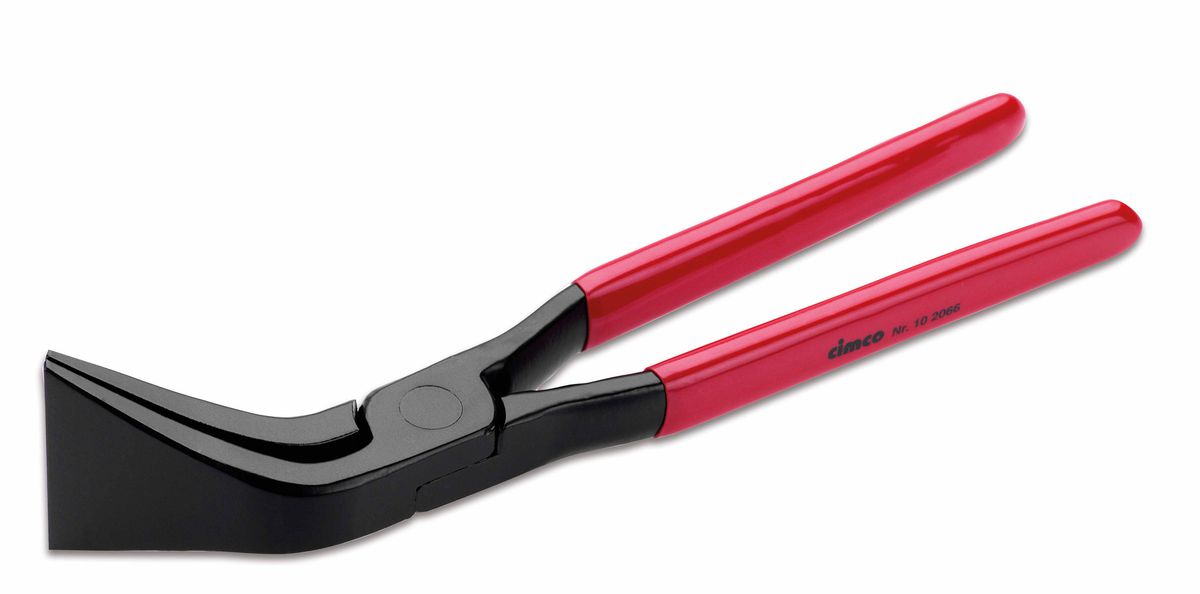 Falzzange 45 Grad gebogen, Maul 60 mm mit durchgestecktem Gewerbe- Backen und Maul vergütet - Kanten der Falzzange leicht abgerundet - Schenkel rot kunststoffbeschichtet, 260 mm