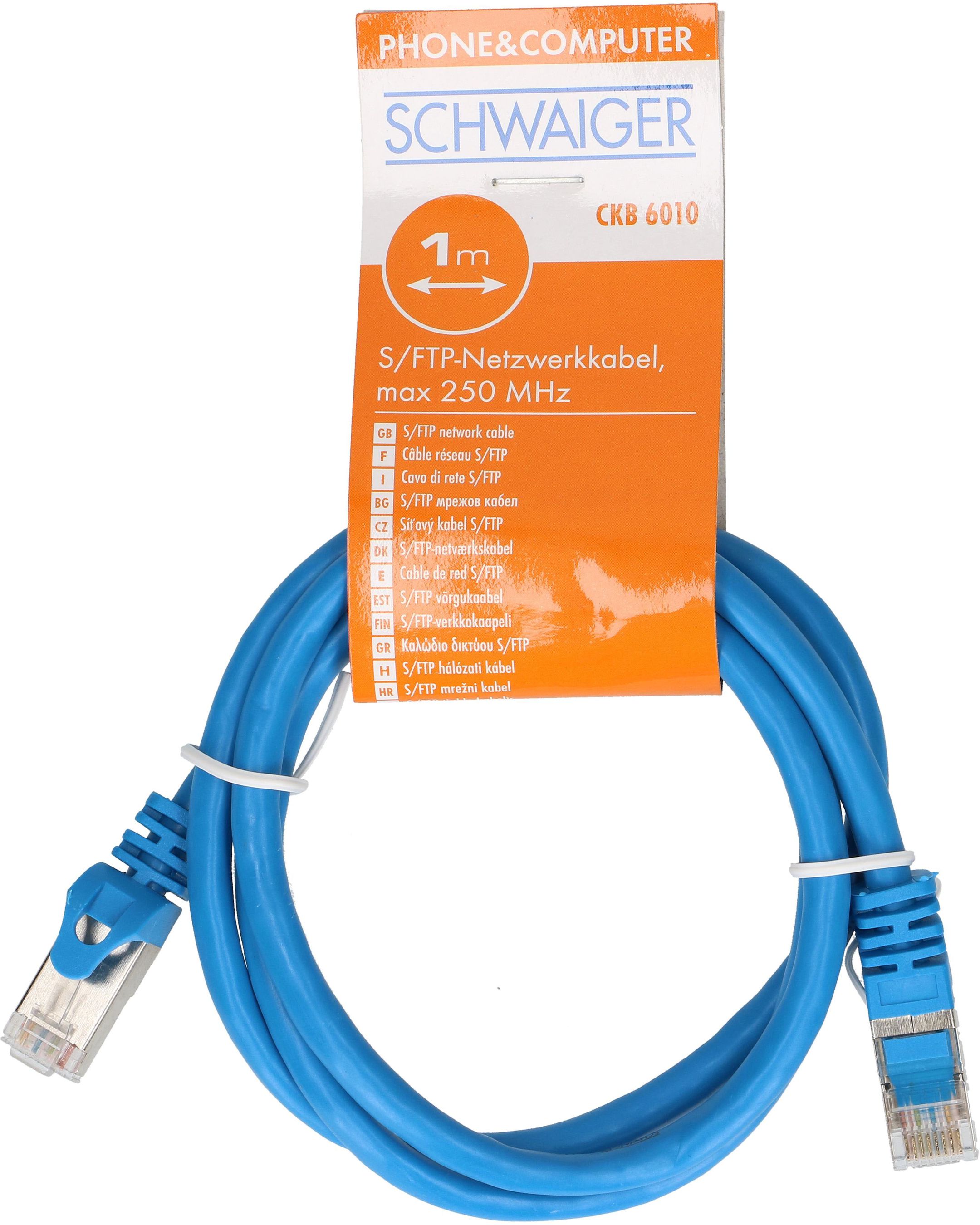 Netzwerkkabel Kat. 6 S/FTP 1.0m blau / Seite 1: Stecker RJ45 / Seite 2: Stecker RJ45