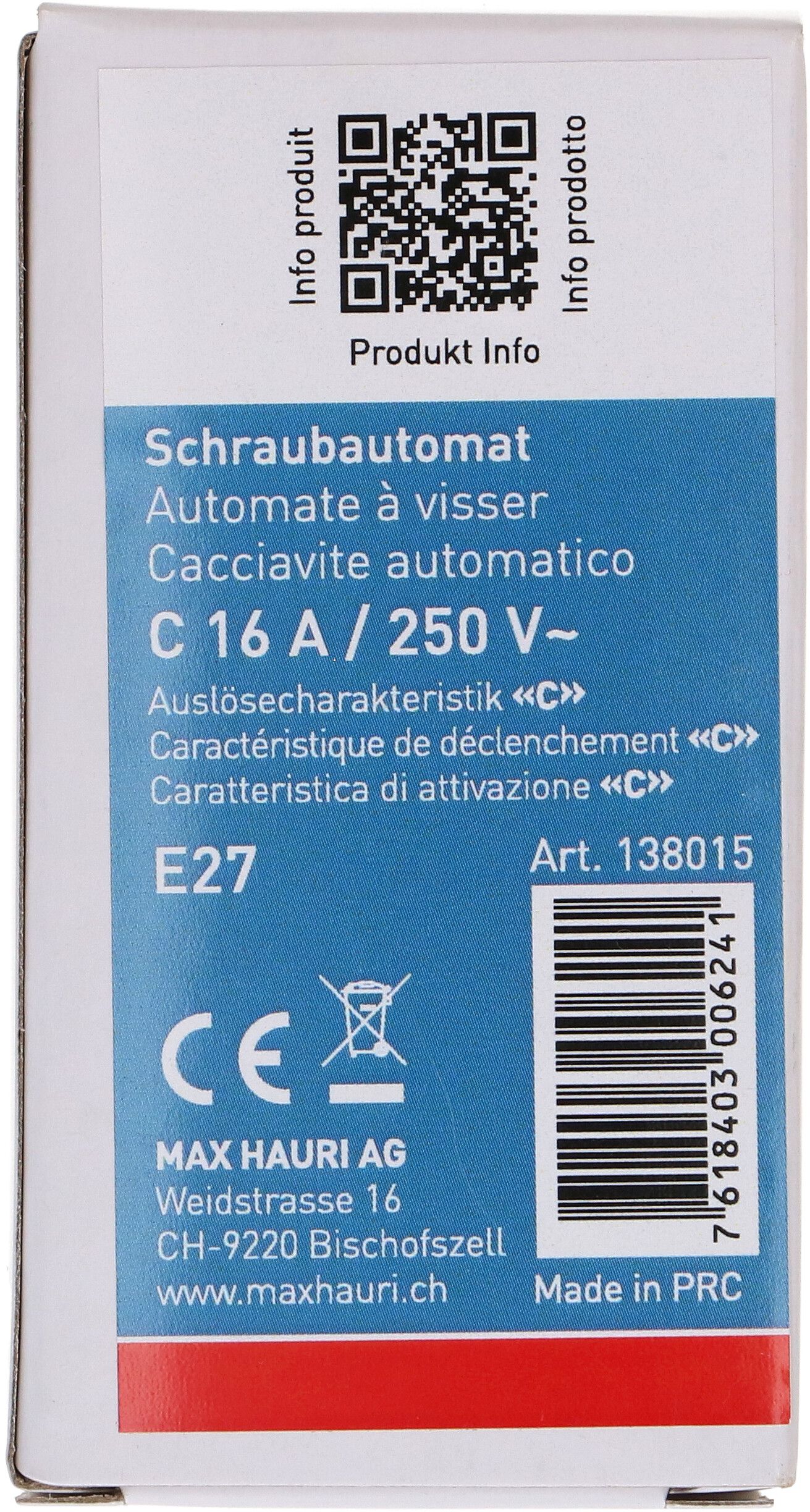 Schraubautomat 16A 250/380V / E27 / Auslösecharakteristik C