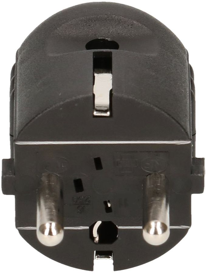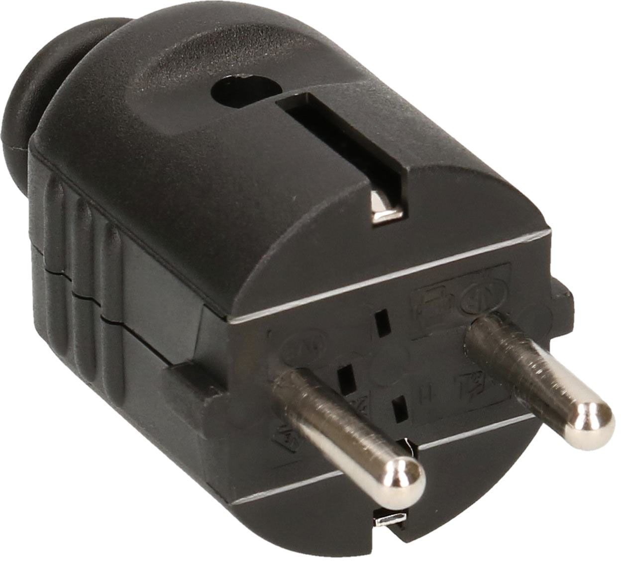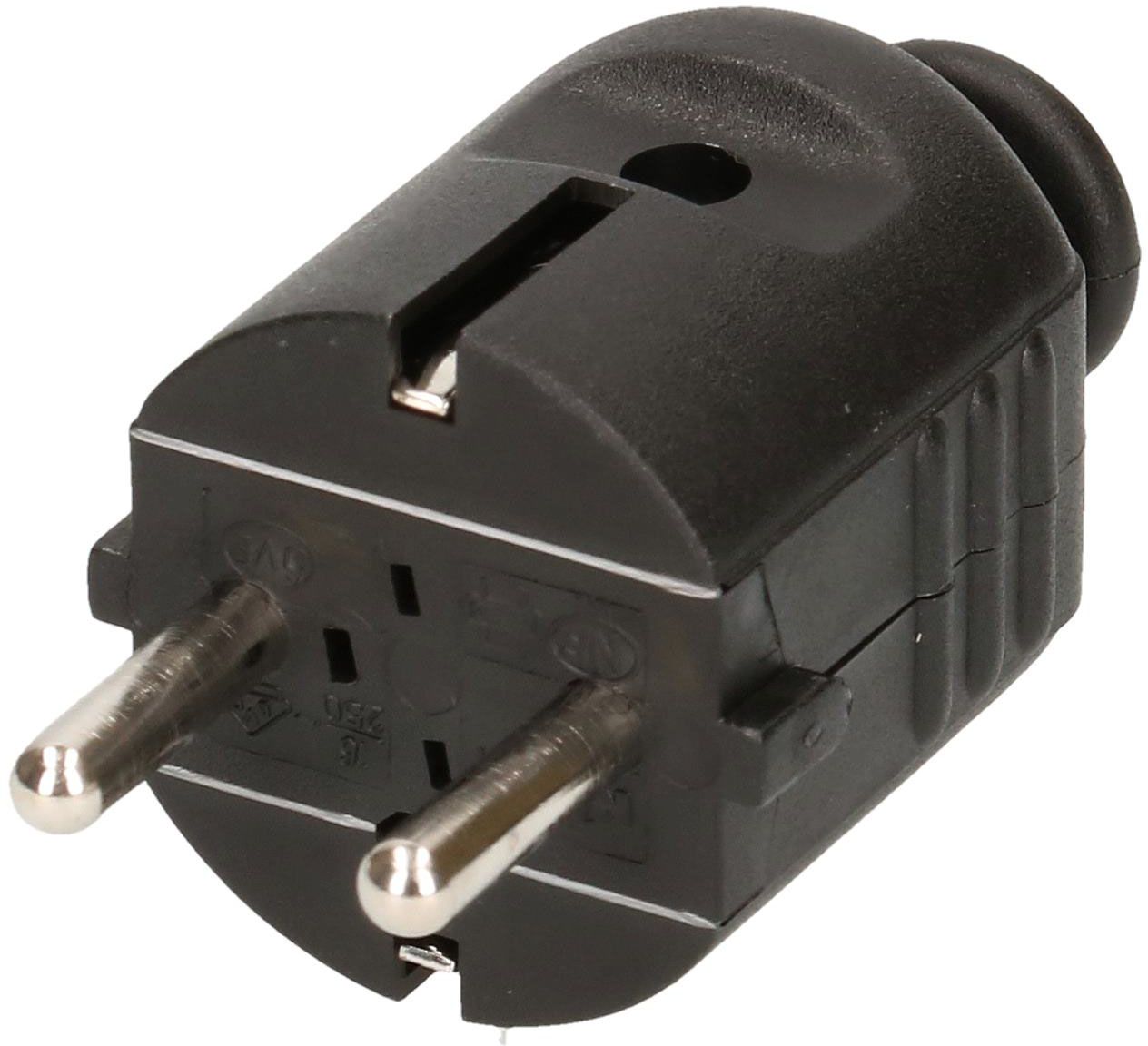 Stecker Schuko / Spannung: 250V / Strom: 16A / Farbe: schwarz / Zusatzfunktion: Doppelerdsystem Typ E/F / Variante klein / Querschnitt 0.75-1.0mm2