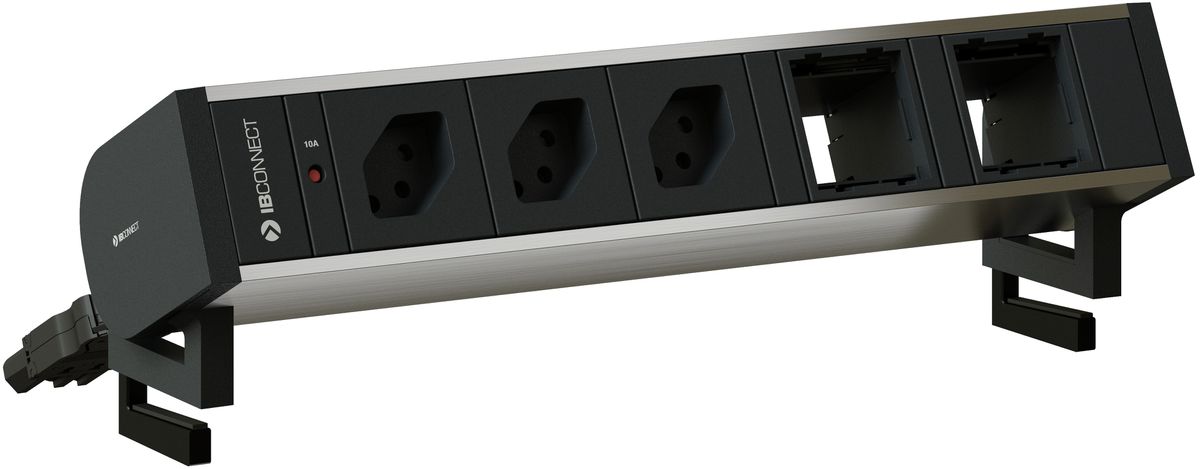 SUPRA Steckdoseneinheit / Farbe: Profil farblos eloxiert C27, Komponenten anthrazit RAL7016 / 3x Typ 13, 2x Leermodul / exkl. Befestigungsset / Material: Aluminium / Zuleitung: Steckverbinder mischverwendbar mit AC166 und dem Marktstandard H05VV-F3G1.5 0.3m