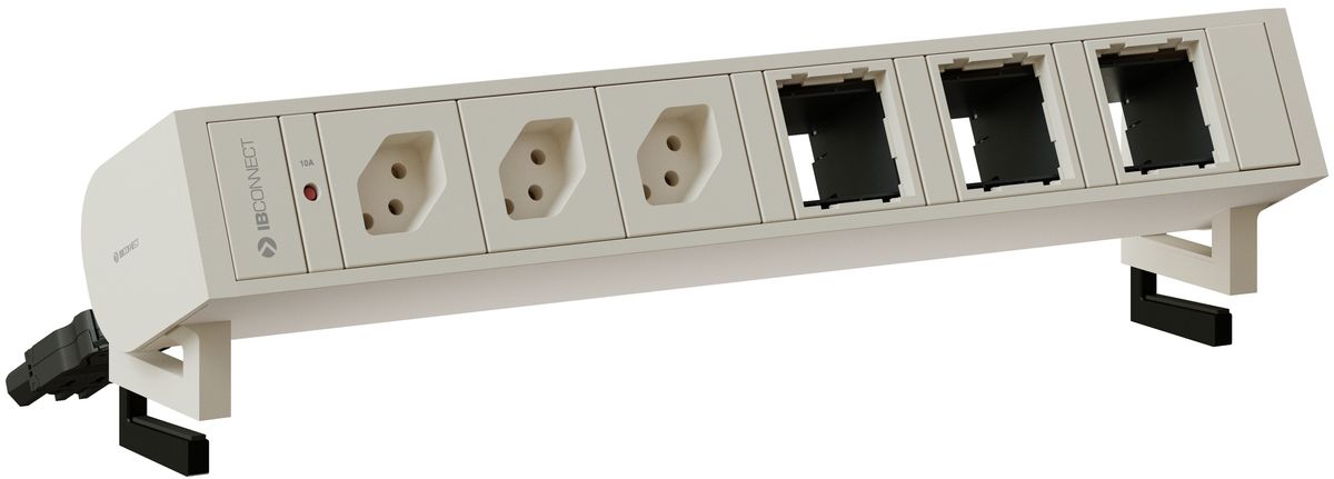 SUPRA Steckdoseneinheit / Farbe: Profil und Komponenten weiss RAL9010 / 3x Typ 13, 3x Leermodul / exkl. Befestigungsset / Material: Aluminium / Zuleitung: Steckverbinder mischverwendbar mit AC166 und dem Marktstandard H05VV-F3G1.5 0.3m
