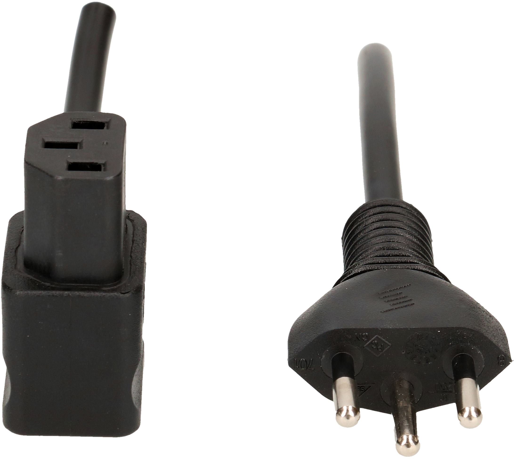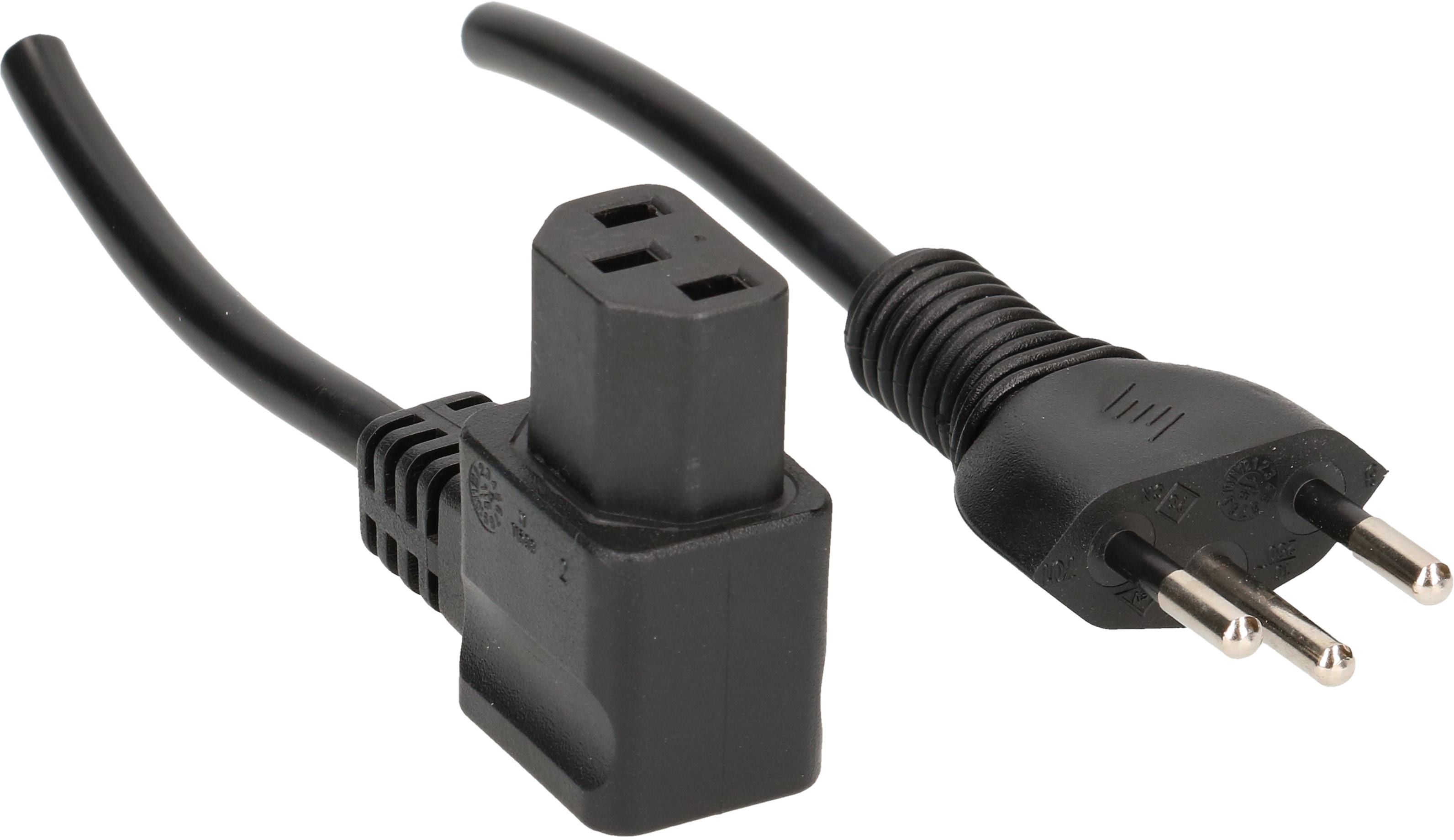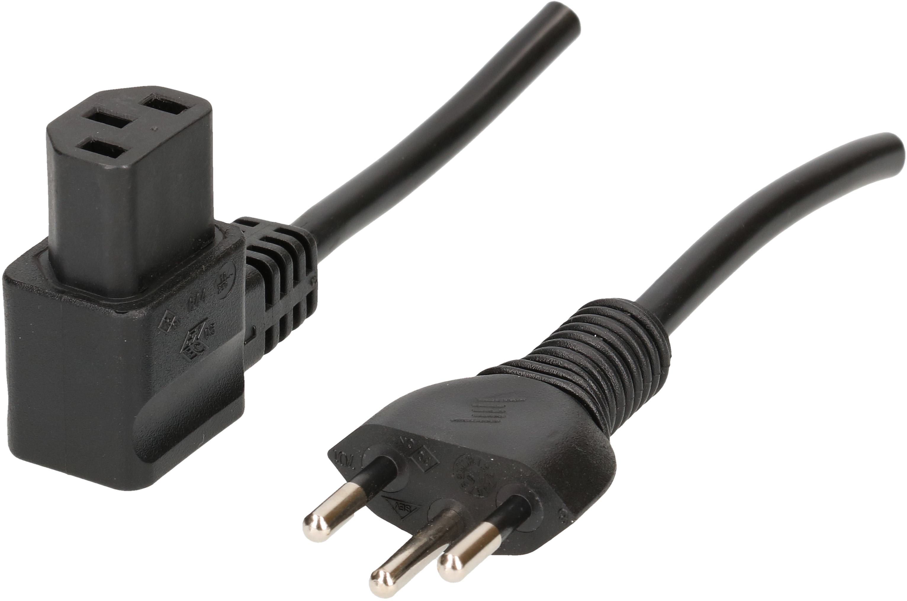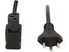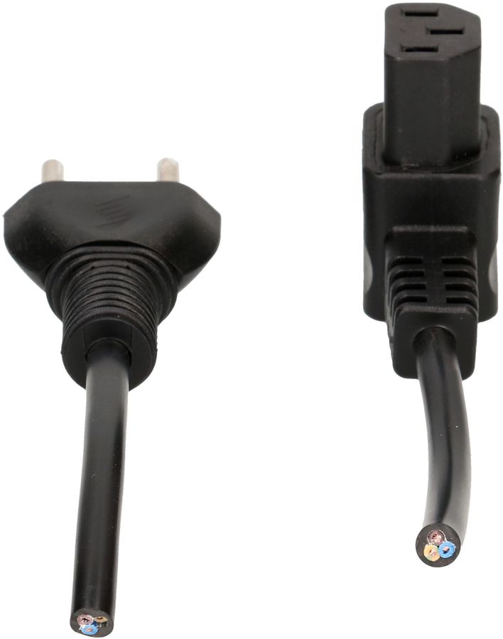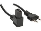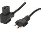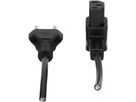 TD-Apparatekabel H05VV-F3G0.75 1.8m schwarz / Seite 1: Stecker Typ12 angespritzt / Seite 2: Kupplung C13 gewinkelt, Kabelabgang links bei PE oben