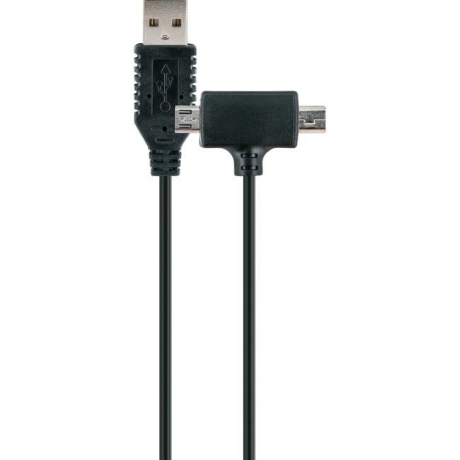 USB 2.0 Kabel 1.0m schwarz / Seite 1: Stecker USB 2.0 A / Seite 2: Stecker USB 2.0 Micro und USB 2.0 Mini