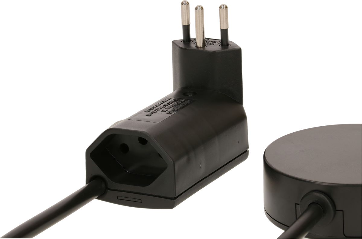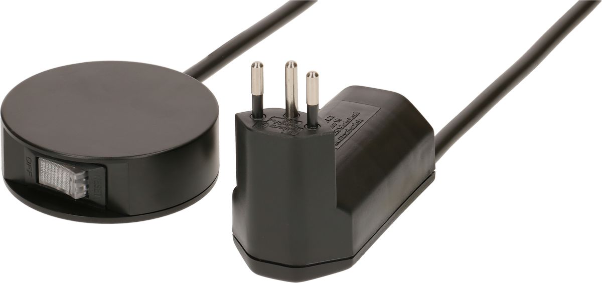 Zwischenstecker Typ 12 / Typ 13 schwarz mit externem Schalter / Zusatzfunktion: mit Überstromschutz-Schalter, mit Magnet / Verbindungskabel: 2m
