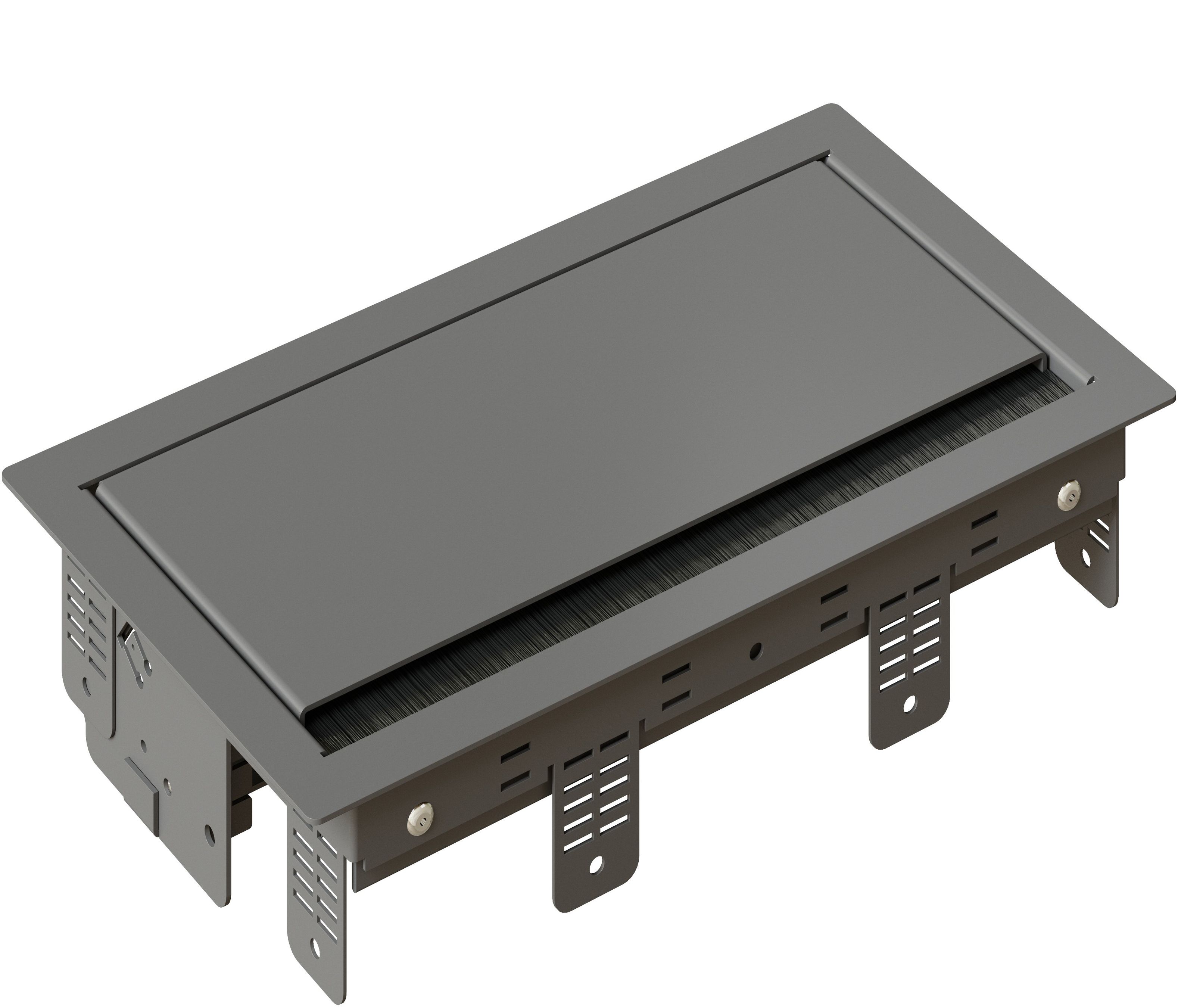 Les cadres d'encastrement BOX de haute qualité sont montés avec les unités de raccordement CUBOBOX. Ils constituent la solution d'encastrement idéale pour des raccordements discrets au courant et au multimédia, car les appareils raccordés peuvent être utilisés même lorsque le couvercle est fermé grâce à la brosse anti-poussière. L'encastrement convient pour des panneaux de 20 à 40 mm d'épaisseur, tout en préservant l'espace pour les jambes sous la table grâce à une profondeur d'encastrement minimale. Les cadres d'encastrement BOX sont parfaitement adaptés à une utilisation dans les salles de réunion, les hôtels ou les bibliothèques.