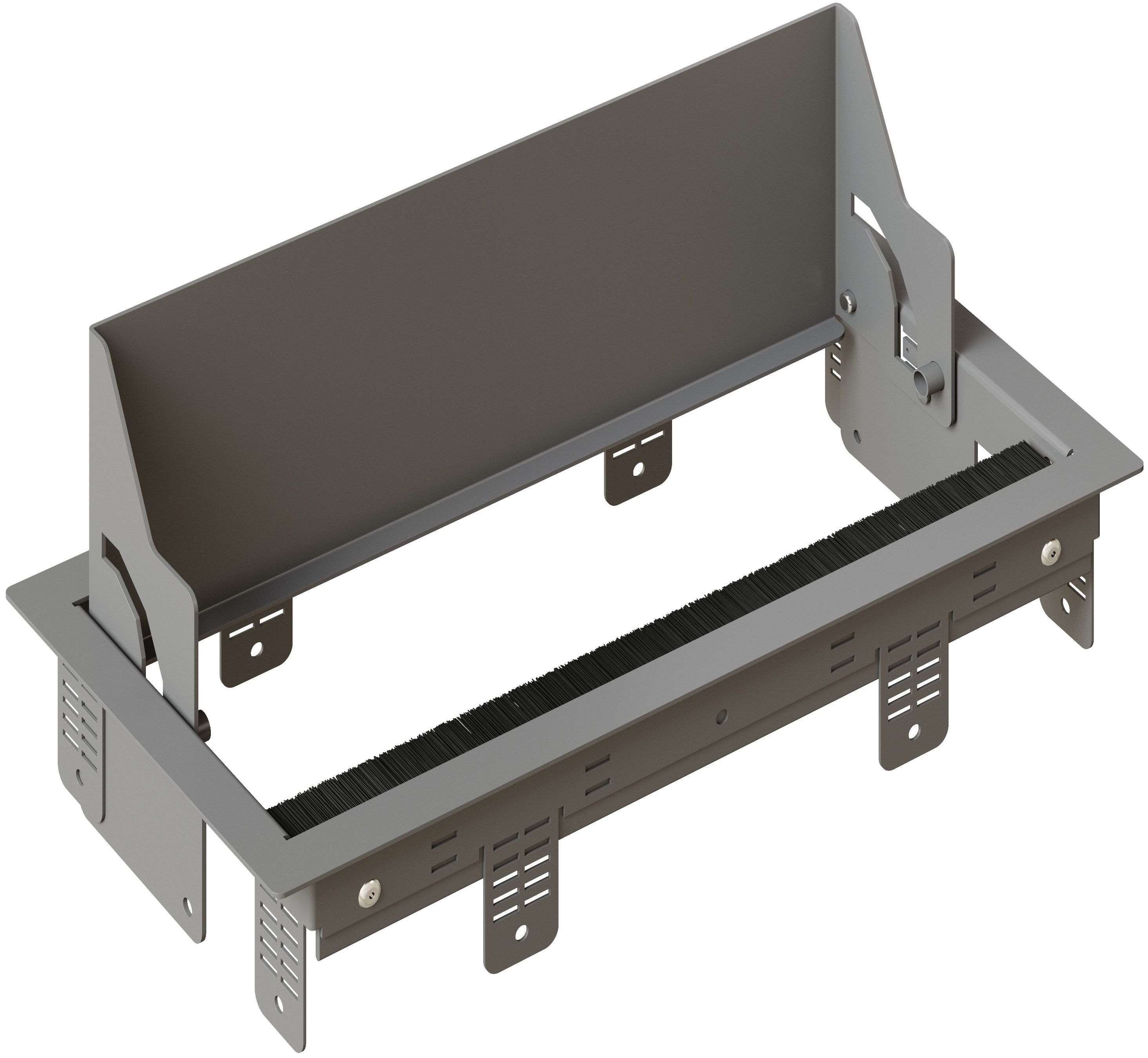 Le cadre d'encastrement CAP est le passage de câbles idéal dans une table de conférence. Les câbles et les panneaux de connexion disparaissent dans la goulotte située en dessous ou dans le bac CAP assorti. Il est possible de le combiner avec des panneaux de connexion de toutes les marques, mais les panneaux de connexion CUBO conviennent particulièrement bien, car leur structure modulaire permet de choisir des connexions courant-chargement et multimédia. Comme les câbles peuvent être passés à travers la brosse anti-poussière même lorsque le couvercle est fermé, les branchements restent élégamment cachés. L'installation du cadre convient pour des panneaux de 20 à 40 mm d'épaisseur et s'avère simple même pour les tables réglables en hauteur. Le cadre de montage peut être plaqué sur demande (CAP PLUS).