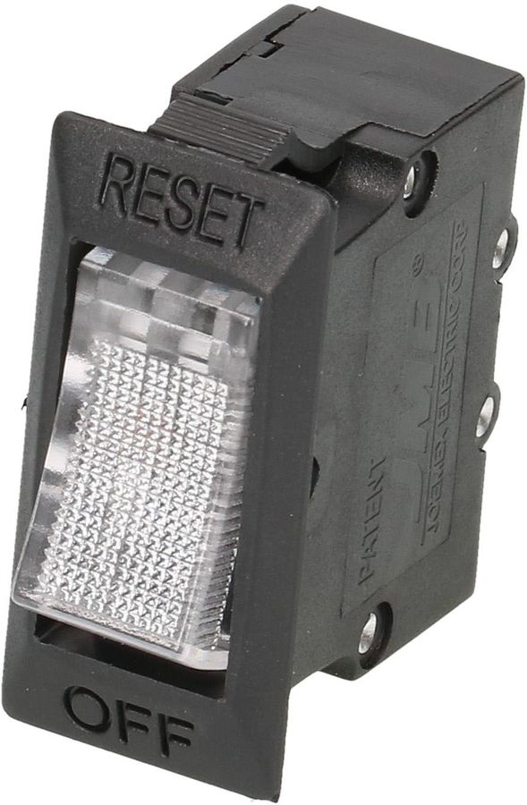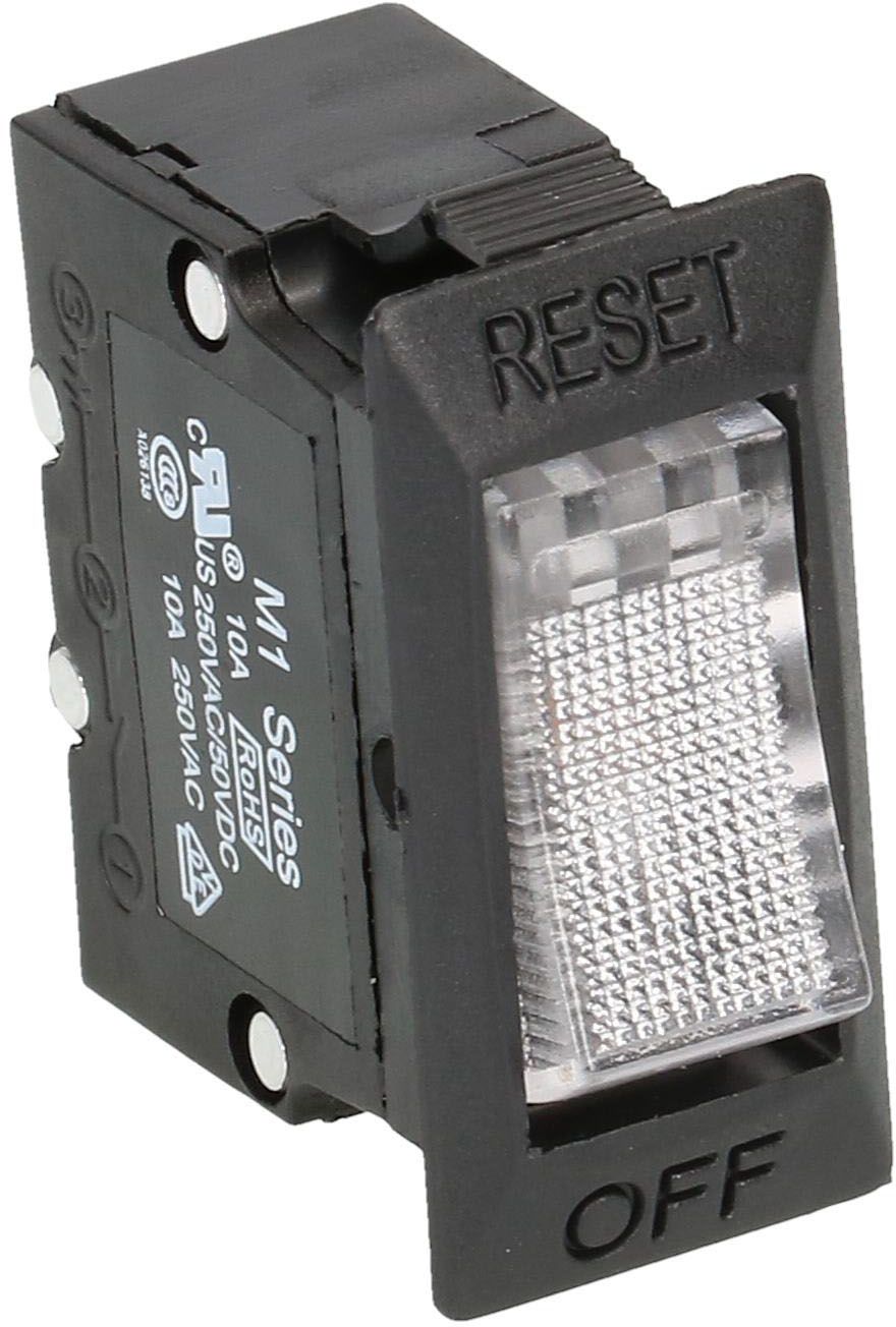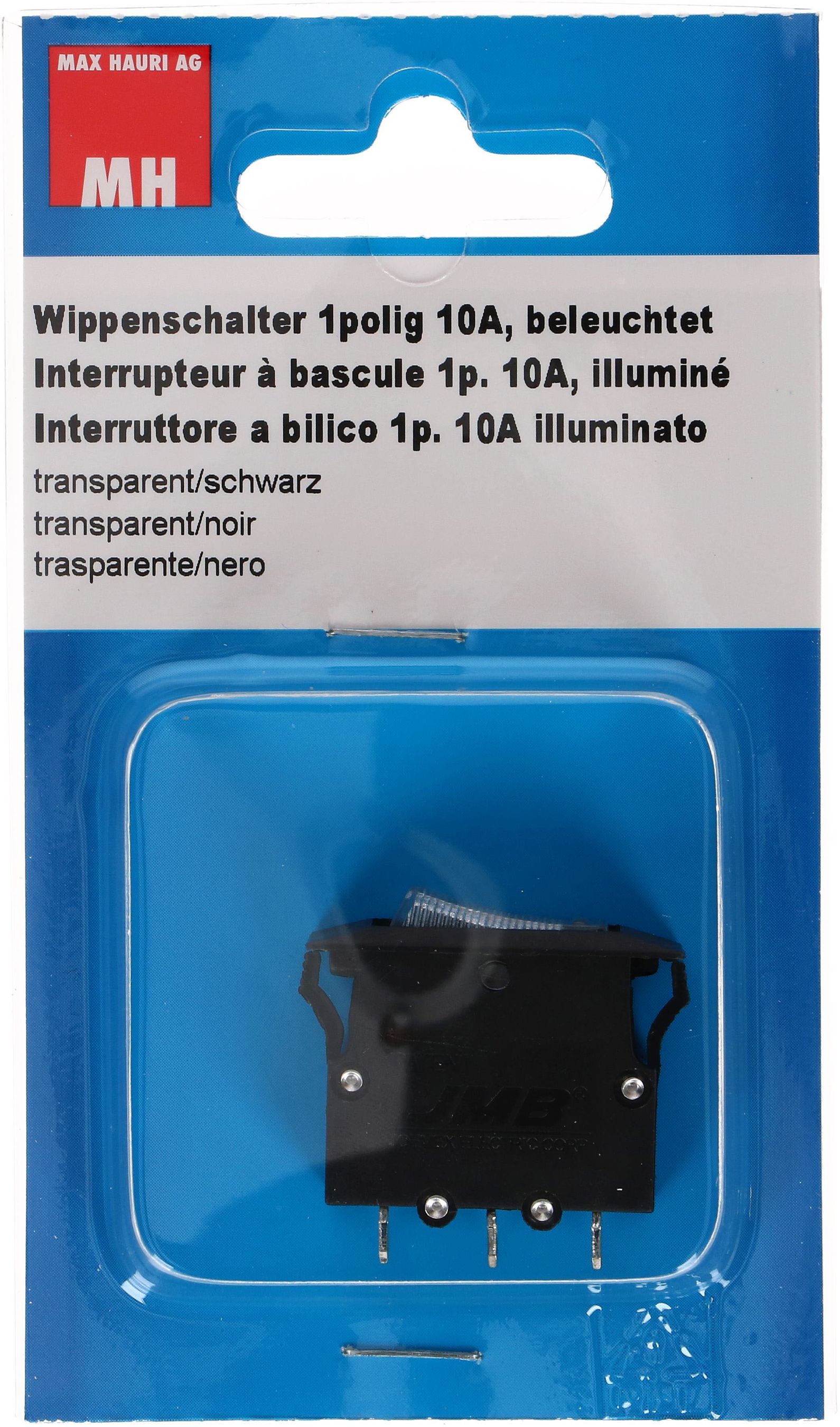 inerrupteur à bascule 1 pôle AUS / courant: 10A / tension: 250V / fonction supplémentaire: illuminé / couleur: boîtier noir, bascule transparente / fiche plate 6.3x0.8 / protection de surintensité