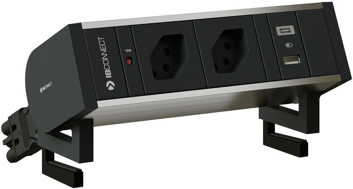 SUPRA bloc multiprise / couleur: profil anodisé incolore C27, composants anthracite RAL7016 / 2x type 13, 1x Charger USB-A 5/10W, 1x Charger USB-C 15W / excl. set de montage / matériau: aluminium / câble d'alimentation: fiche d'appareil utilisable de manière mixte avec GST18 H05VV-F3G1.5 0.3m