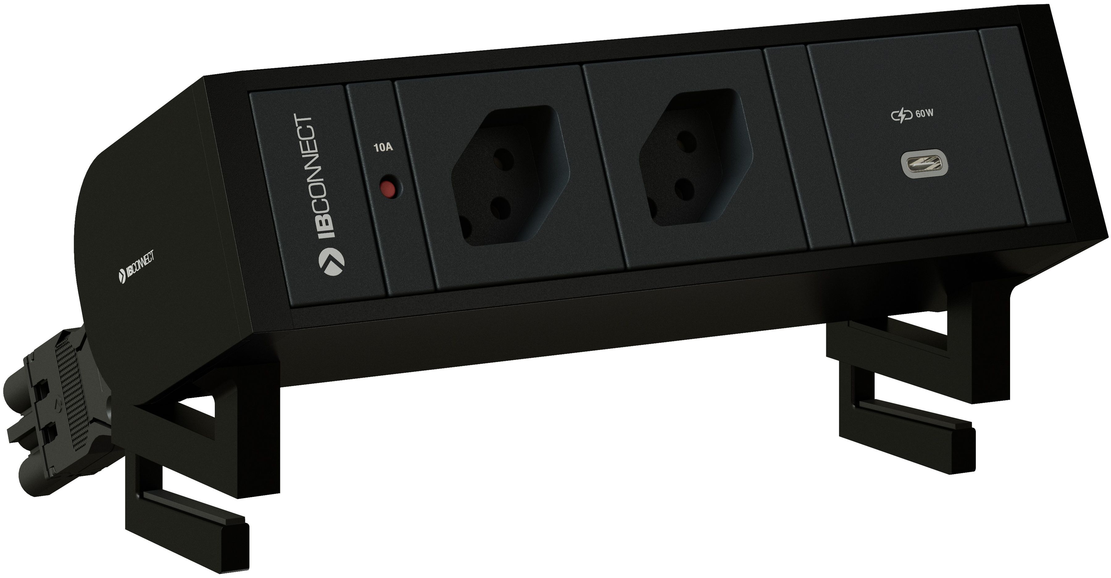 SUPRA bloc multiprise / couleur: profil noir RAL9017, composants anthracite RAL7016 / 2x type 13, 1x Charger USB-C 60W (PD3.0) / excl. set de montage / matériau: aluminium / câble d'alimentation: connecteur utilisable en mélange avec l'AC166 et le standard du marché H05VV-F3G1.5 0.3m