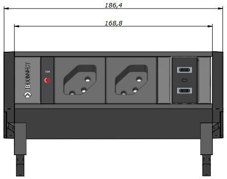 SUPRA bloc multiprise / couleur: profil noir RAL9017, composants anthracite RAL7016 / 2x type 13, 2x Charger USB-C 10/15W / excl. set de montage / matériau: aluminium / câble d'alimentation: connecteur utilisable en mélange avec l'AC166 et le standard du marché H05VV-F3G1.5 0.3m