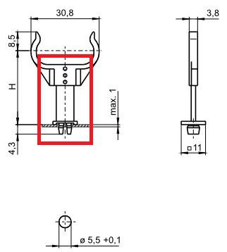 Portalampada per lampade TC-S, TC-SEL, regolabile in altezza H: 27,5/30,5/33,5 mm, base a innesto per foro Ø 5,5 mm, per pareti di spessore fino a 1 mm, peso: 0,7 g, unità di confezionamento: 500 pezzi, tipo: 35061, base, PC, bianco