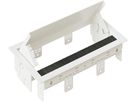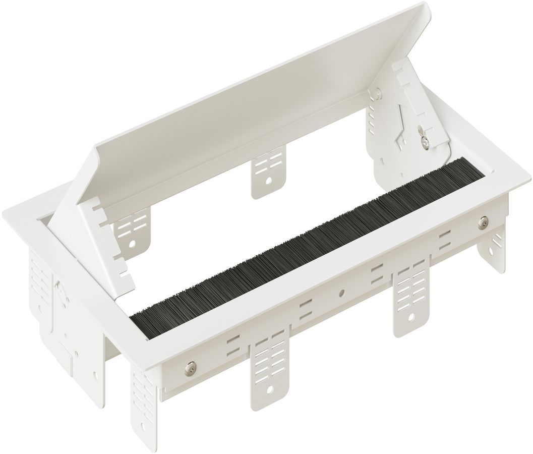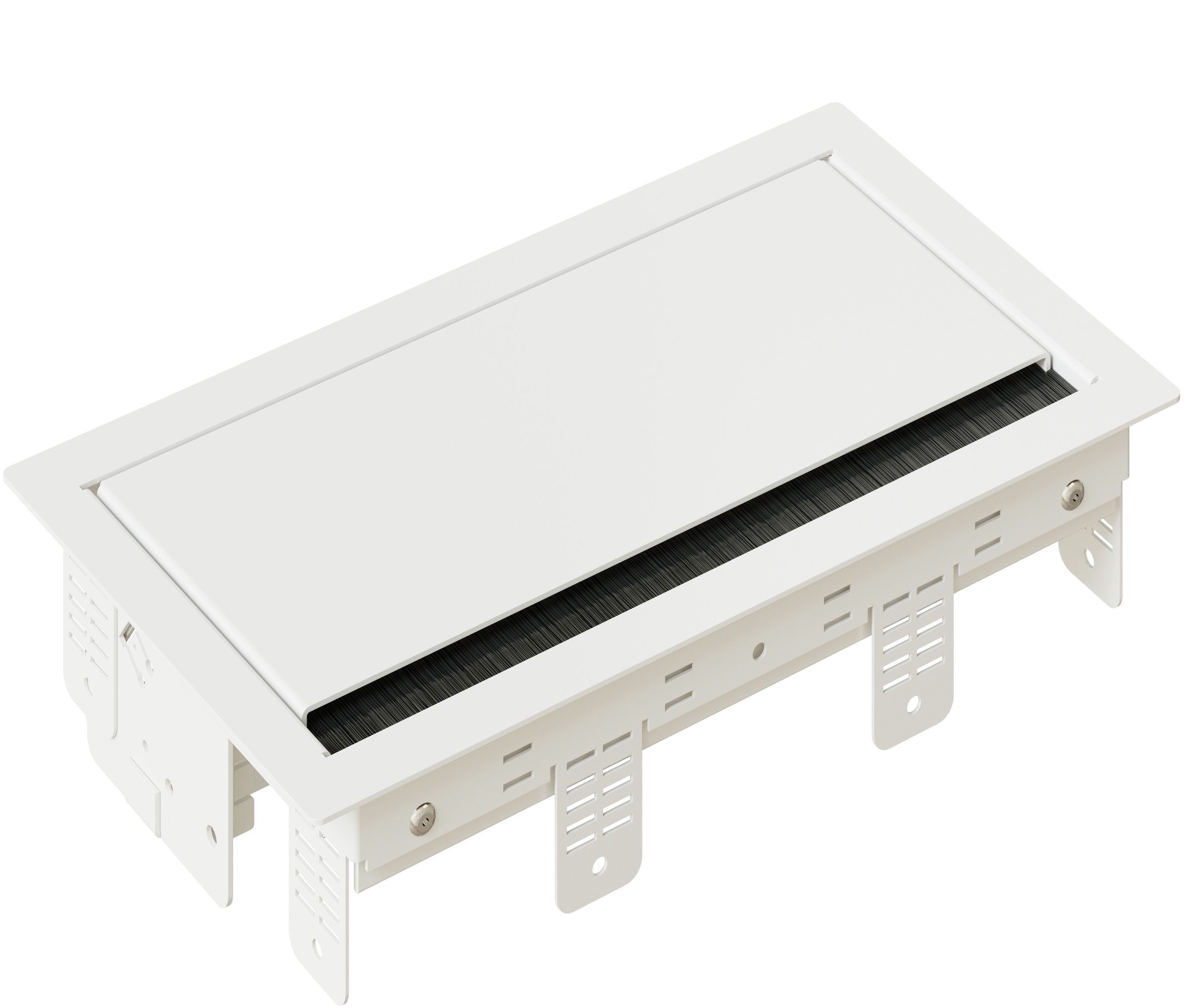I telai di installazione BOX di alta qualità vengono installati insieme alle unità di connessione CUBOBOX. Sono la soluzione di installazione ideale per connessioni discrete di corrente e multimediali, poiché i dispositivi collegati possono essere utilizzati anche con il coperchio chiuso grazie alla spazzola di protezione dalla polvere. L'installazione è adatta a pannelli di spessore compreso tra 20 e 40 mm, mentre lo spazio per le gambe sotto il tavolo viene mantenuto grazie alla minima profondità di installazione. I telai di installazione BOX sono ideali per l'uso in sale riunioni, hotel o biblioteche.