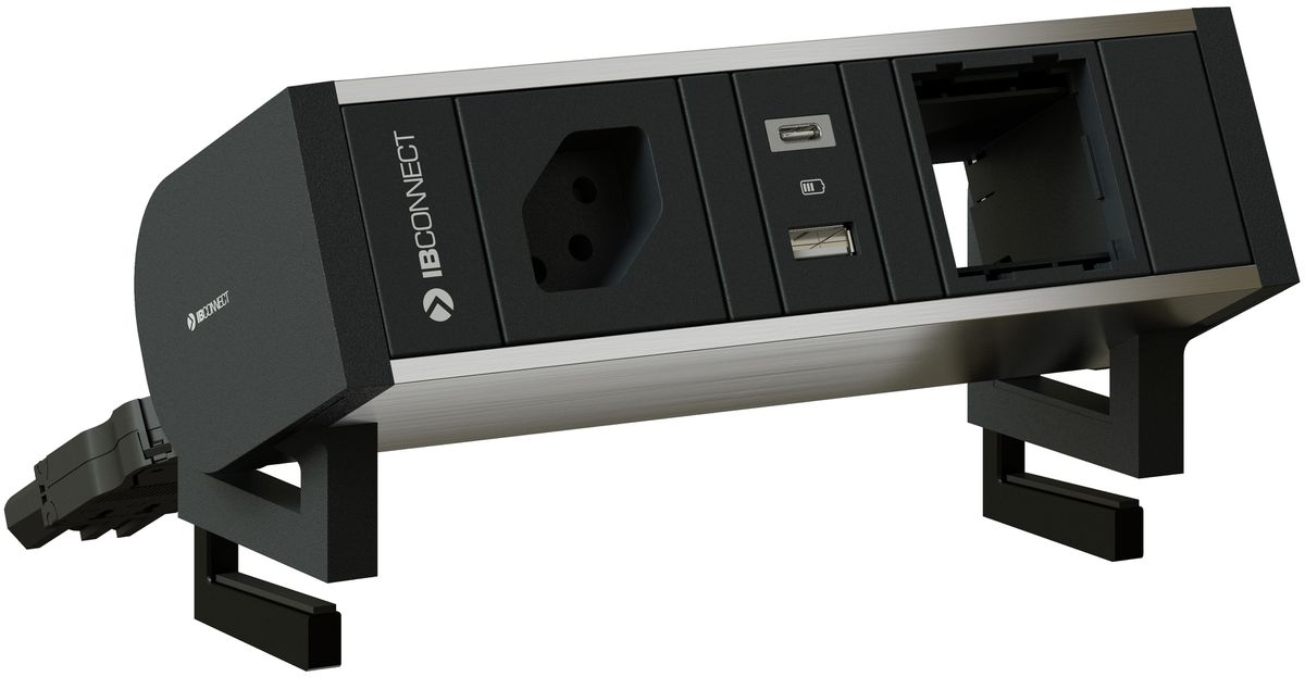 I pannelli di connessione SUPRA sono la soluzione estetica per collegamenti configurabili sulla scrivania. L'installazione è rapida e semplice grazie a un sistema di fissaggio su piani di scrivania con uno spessore massimo di 55 mm. Poiché i morsetti di montaggio non sono inclusi nella fornitura, devono essere ordinati separatamente in base allo spessore del piano della scrivania. Il design modulare consente configurazioni personalizzate di prese, moduli di ricarica USB e connessioni multimediali.