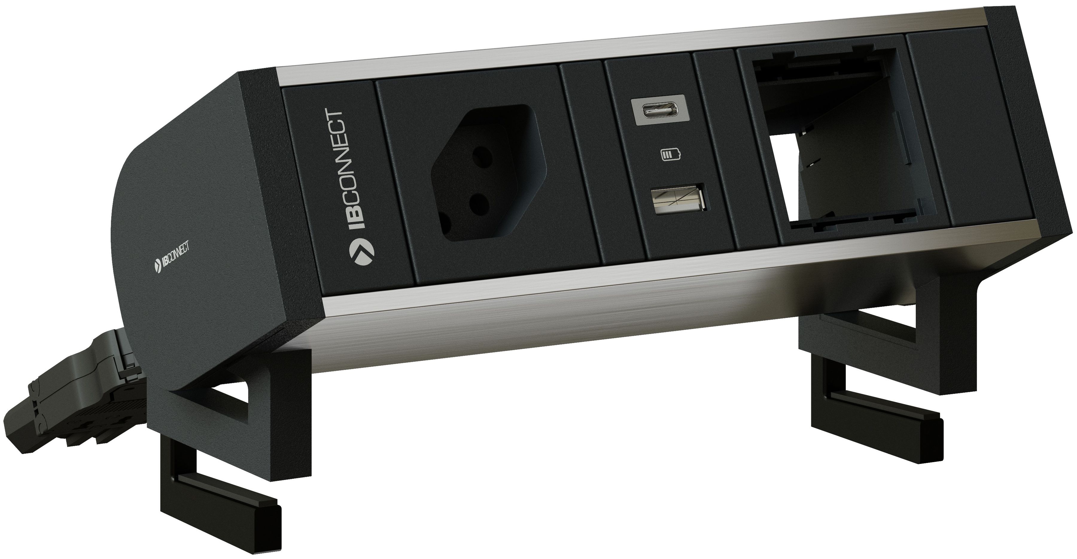 SUPRA presa multipla / colore: profilo anodizzato incolore C27, componenti antracite RAL7016 / 1x tipo 13, 1x Charger USB-A 5/10W, 1x Charger USB-C 15W, 1x modulo vuoto / excl. set di fissaggio / materiale: ALU / alimentazione: connettore per uso misto con standard di mercato H05VV-F3G1.5 0.3m